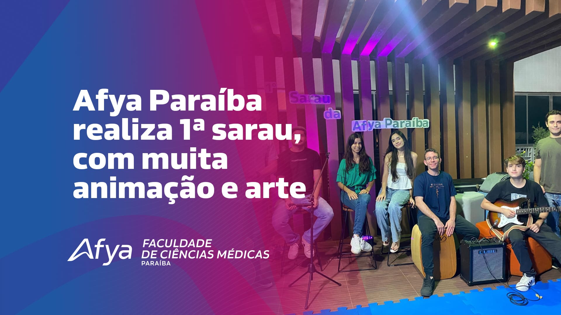 A Afya Paraíba realizou, durante a Semana da Saúde Integral, um momento especial que uniu arte, saúde e integração: o Sarau Musical “Bem-Estar através da Arte”. O evento nasceu do desejo de dar voz aos talentos artísticos da comunidade acadêmica, a partir da identificação espontânea de estudantes que cantam e tocam instrumentos em seus momentos livres.